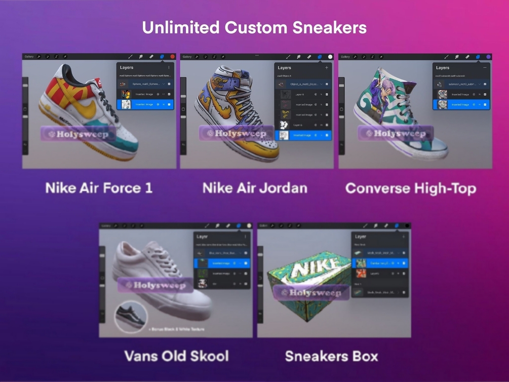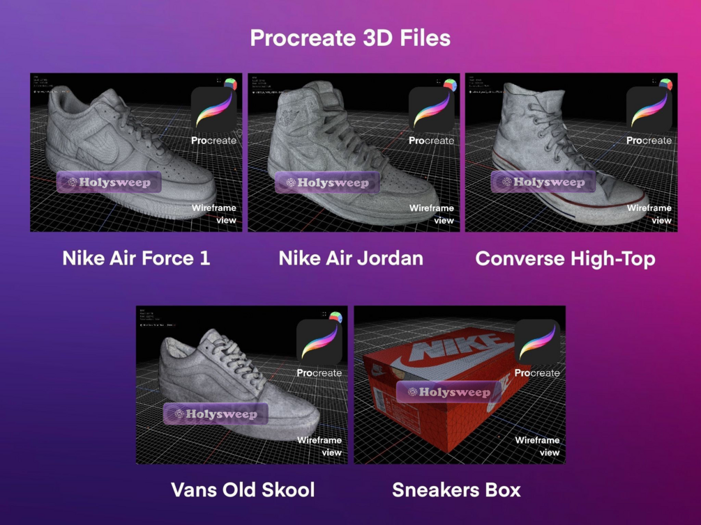 Custom Sneakers Set 3D Model for Procreate 3D