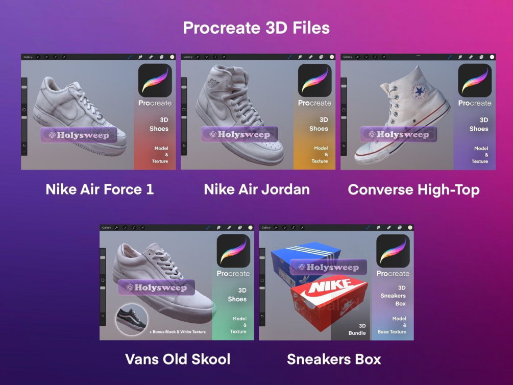 Custom Sneakers Set 3D Model for Procreate 3D